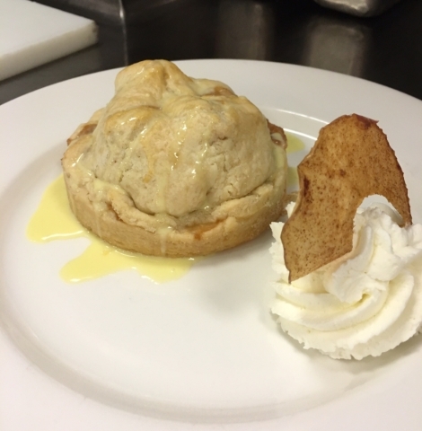 An individual-sized apple pie is served with nutmeg creme anglaise, $11.