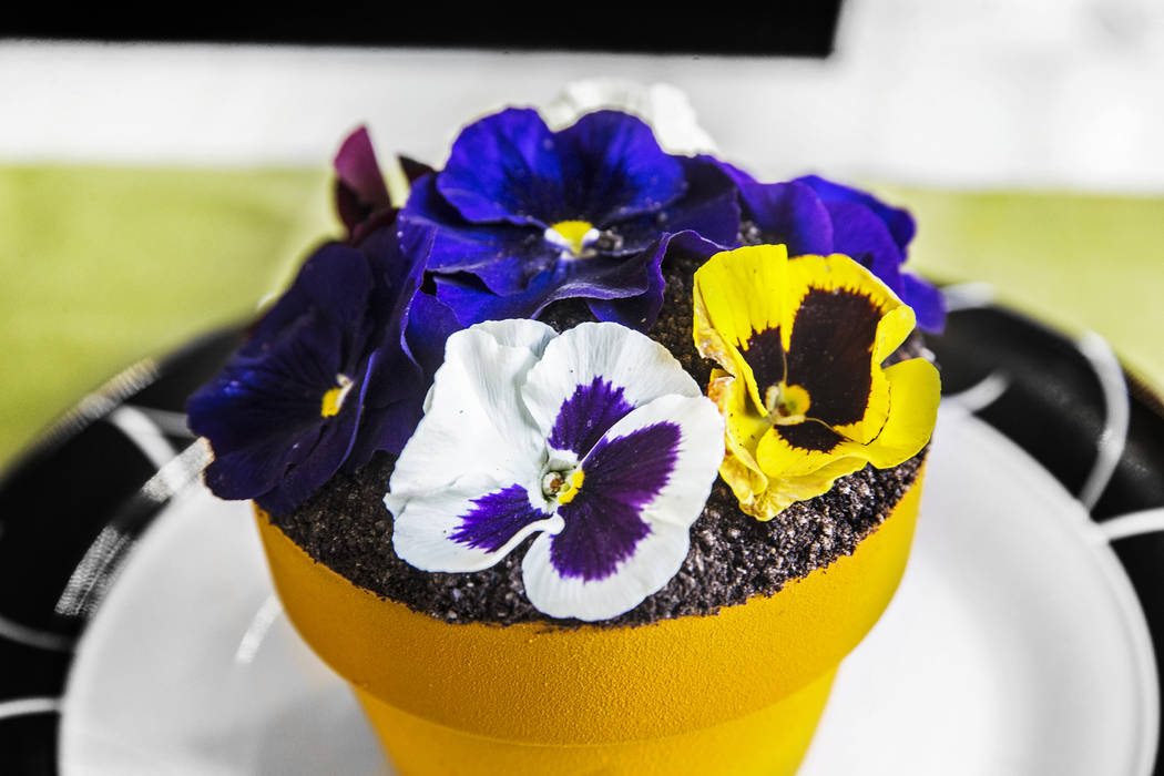 When you glace quickly at this most realistic of sweet offerings, you could mistake it for the flower pot of an aspiring gardener. Slice through the edible live flowers, Oreo crumb soil and hard chocolate flower pot shell, however, and a beautiful layer cake reveals itself. The chef presents alternating rows of chocolate mousse, chocolate cake and raspberry jam, the last of which was just added to the recipe a few months ago to cut through the dense chocolate. $18