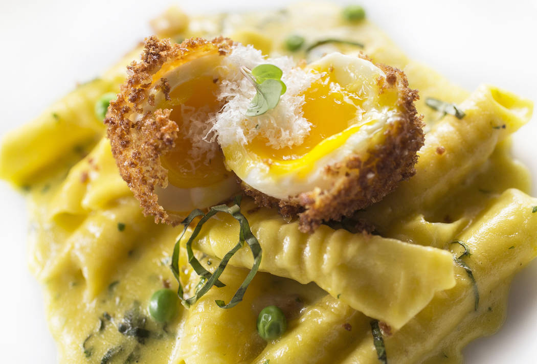 “It’s sort of like a Scotch egg but really runny,” he said. “I think with a pasta dish it definitely adds texture … because the outside is a little crunchy.”