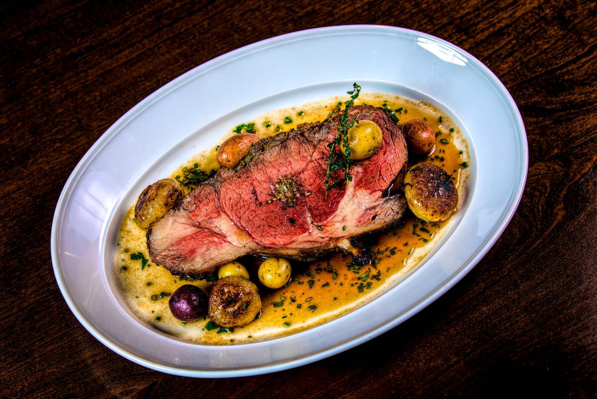 A 20-ounce cut of prime rib roast will be seasoned with Dijon mustard, Worcestershire sauce and fresh rosemary, then finished with ONE Steakhouse’s signature steak salt blend. Side dishes include butter-braised marble potatoes, herb au jus and creamy horseradish. The dinner is $74.