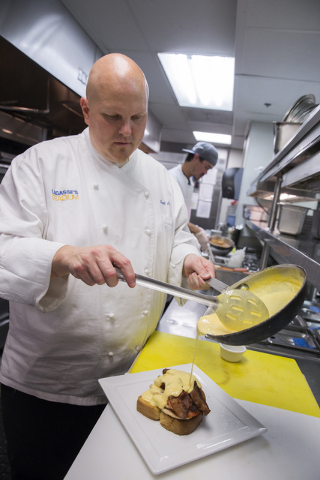 But even dedicated Kentucky Derby fans can’t live on mint juleps alone, so you’ll need to think about what food to serve. Chef Scott Pajak of Lagasse’s Stadium at Palazzo plans a Derby menu this weekend with such Southern favorites as fried green tomatoes coated in cornmeal, fried-chicken biscuits with bourbon barbecue sauce and fried pickles and a Kentucky Hot Brown, which reportedly originates to Louisville’s Brown Hotel in the ’20s. The latter, he said, will be done in traditional style, with turkey breast on white bread topped with Mornay sauce, tomato, bacon and a sprinkling of chives.