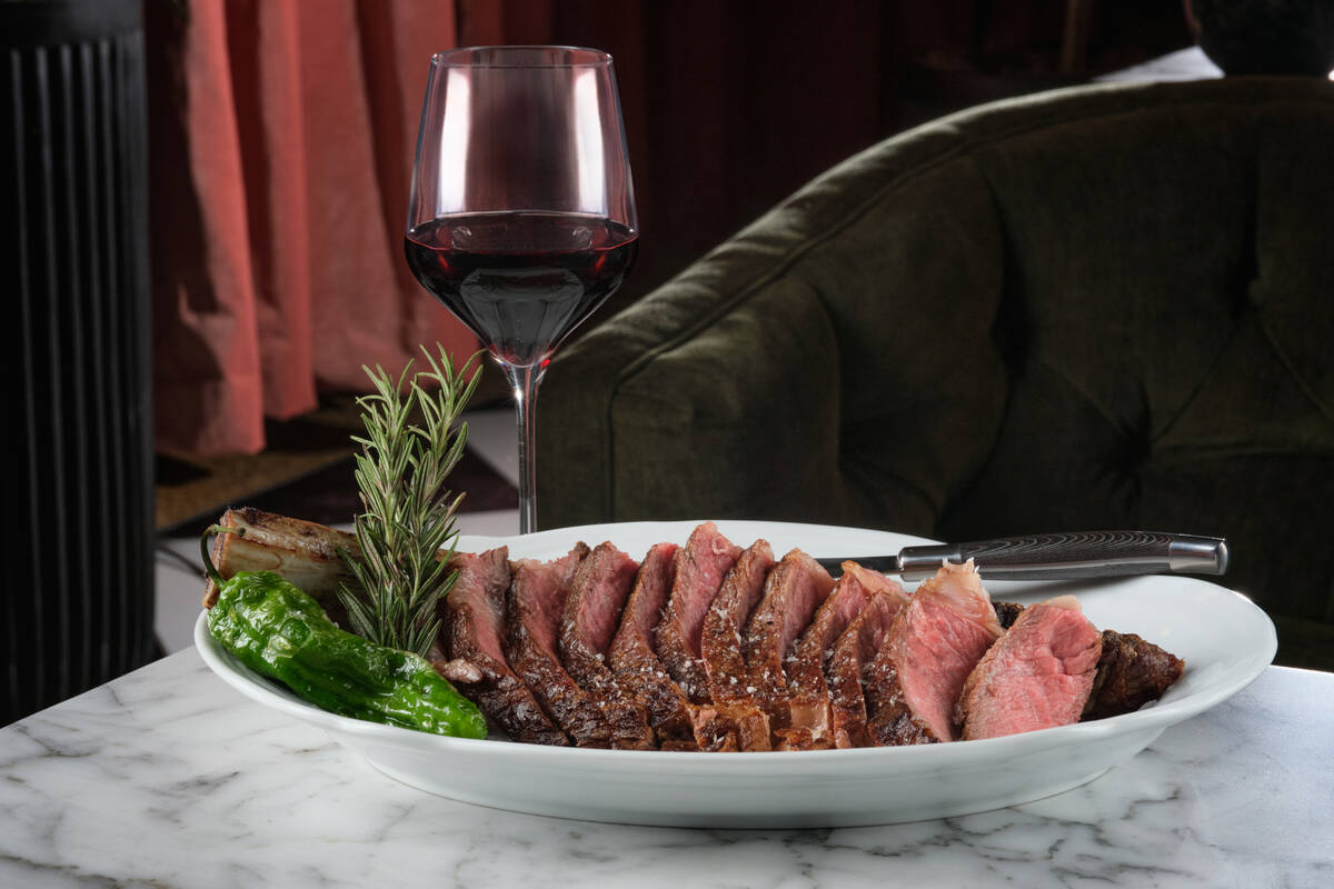As a nod to its steakhouse predecessor, the dinner menu offers six cuts, including a 32-ounce porterhouse and a 32-ounce long-bone tomahawk.
