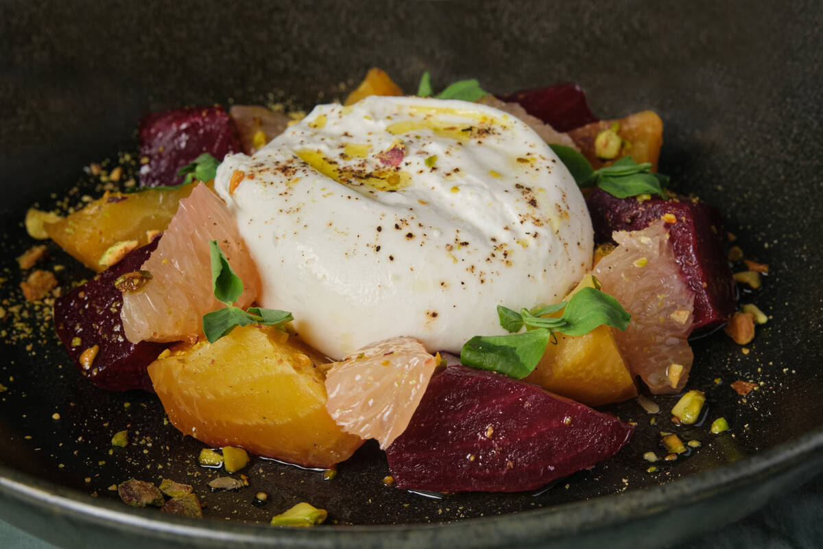 Dinner at Zio’s (3400 Paradise Road; zioslv.com) might begin with burrata and beets: a big blob of burrata encircled by roasted beets and ruby red grapefruit tossed in Campari vinaigrette, everything spattered with crushed pistachios.