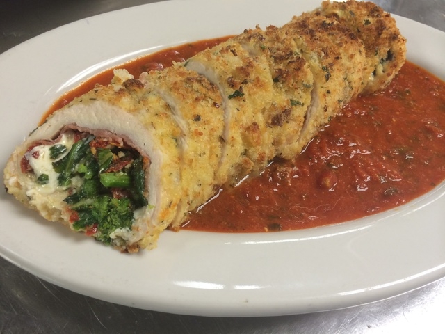 For Glenn Rolnick, corporate chef of Carmine’s, which has a restaurant at the Forum Shops at Caesars, the key to not frying foods we usually think of as fried is a colander, which he upends and places over a dish that’s baking in the oven to ensure that it’ll come out crispy. He developed the method for chicken breast stuffed with broccoli rabe, smoked mozzarella and prosciutto (for which the recipe follows).
