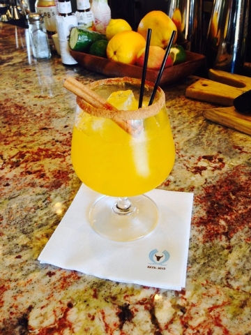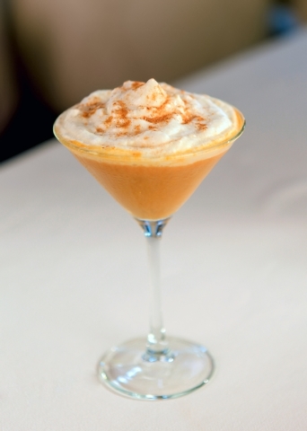 Chablis is combined with mango puree and fresh orange juice, finished with a maple syrup-pumpkin spice rim and garnished with a cinnamon stick, $9.20.