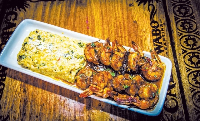 Baja shrimp with garlic, Cabo Wabo tequila-lime sauce and Mexican dirty rice are available as an appetizer, $14.95, or entree, $24.95.