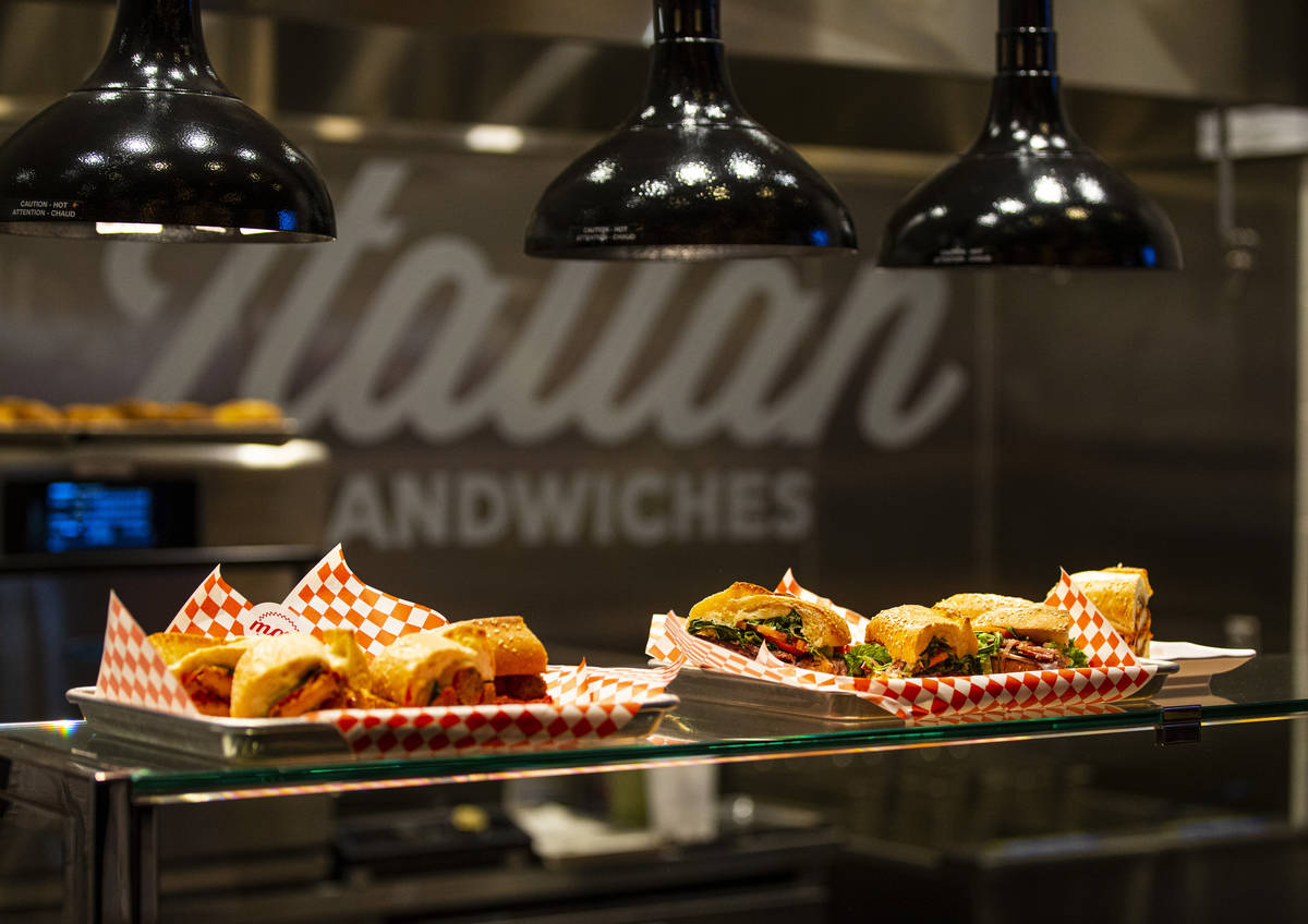 Sandwich offerings from Mozz, by local chef James Trees, are seen during a tour of Resorts World ahead of its opening in Las Vegas on Wednesday, June 23, 2021. (Chase Stevens/Las Vegas Review-Journal) @csstevensphoto