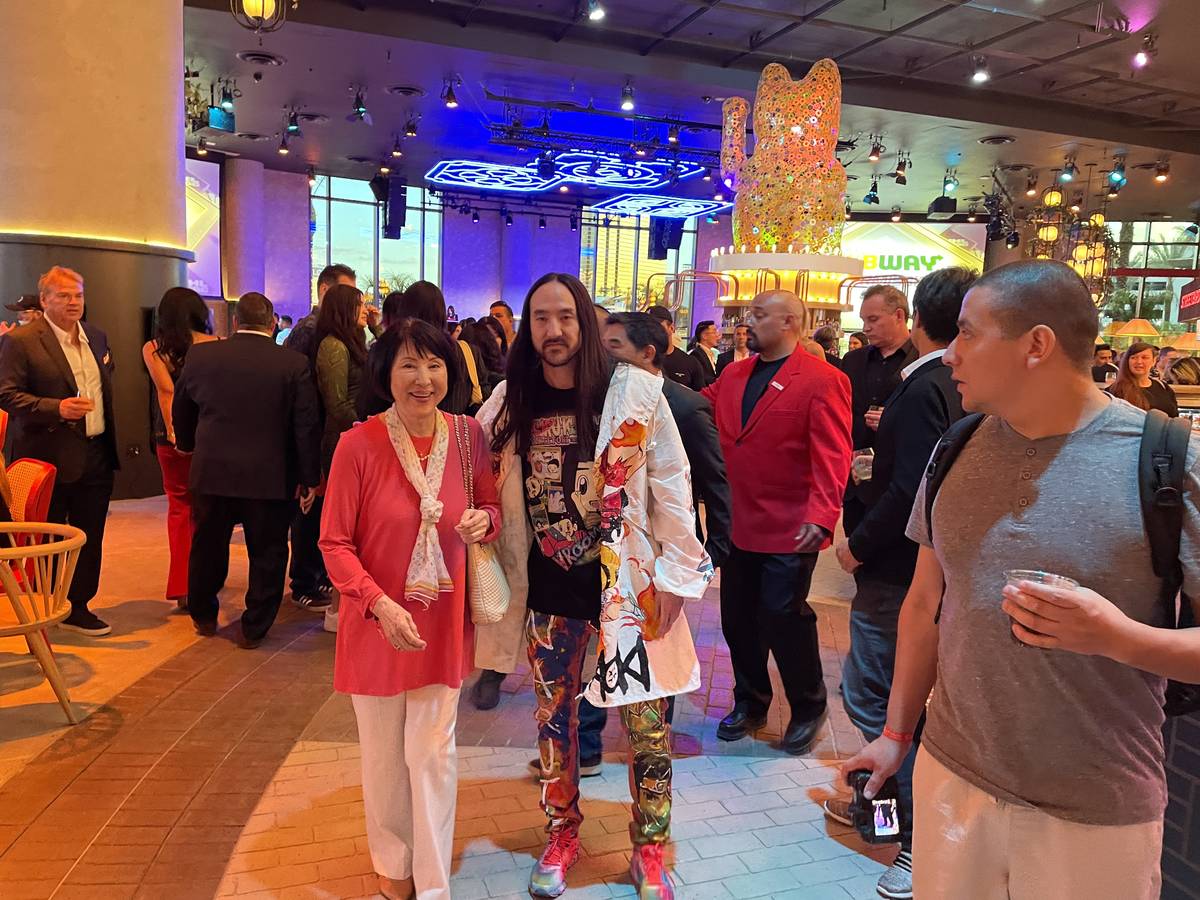 Steve Aoki poses in front of his restaurant, Kuru Kuru Pa Yakitori at Resorts World on Thursday, June 24, 2021. (Janna Karel/Las Vegas Review-Journal
