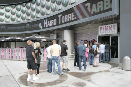 What matters as much as the food in Los Angeles is the experience of obtaining it: queuing behind the hungry crowd that almost always envelops the culinary landmark, sometimes alongside celebrities who never receive VIP treatment. Pink's has no history here, so it relies on the recognition of California tourists and its convenience factor.