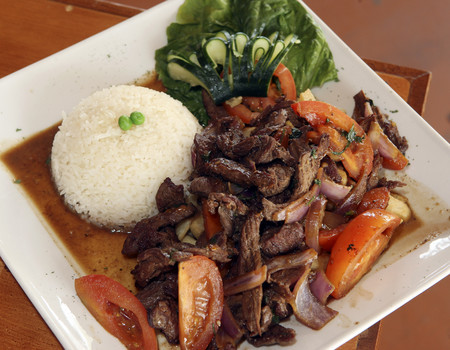 Entrees: Lomo saltado (beef tenderloin sauteed with tomatoes and onions, served with french fries and rice), $13.95; arroz con pollo, $12.95; tacu tacu con lomo fino (beef tenderloin garnished with Peruvian-style beans and fried rice), $14.50; pollo a la brasa (rotisserie chicken marinaded in Peruvian spices), $18.95