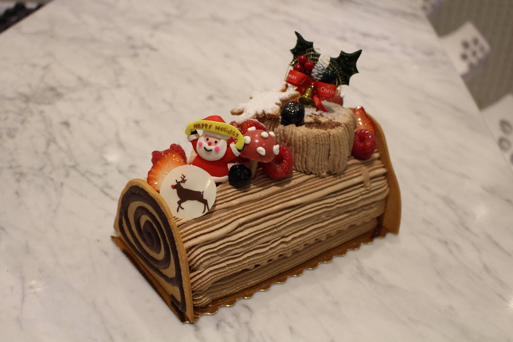 For Sweets Raku’s traditional French chocolate Noel cake, chocolate sponge cake is rolled with chocolate cream and strawberries and frosted with chocolate, bracketed with cookie “log rings” and topped with holiday decorations, $45.