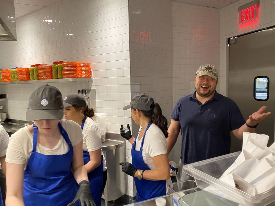 With no advance notice, David Chang officially opened Moon Palace, his slider spot at Palazzo, on Monday morning. Chang was on hand, overseeing the operation in the open kitchen and chatting with guests, as the first sandwiches came off the griddle.