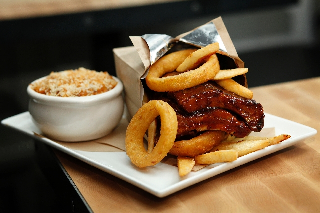 Entrees: mahi mahi tacos, $18; Southern fried chicken, $23.50; bag of bones (dry-rubbed baby back ribs, crispy onions, pot of slow-cooked beans), $29 for a full rack, $15 for a half; mussels and fries, $29; flat-iron steak, $29; filet mignon, $39
