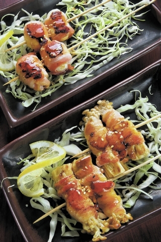 Appetizers: jalapeno puffs, $3.95; chicken yakitori, $3.50; enoki bacon yakitori, $3.25; shrimp shu mai, $3.25; calamari tempura, $4.95; snow crab tempura, $4.50; gyoza, $4.25