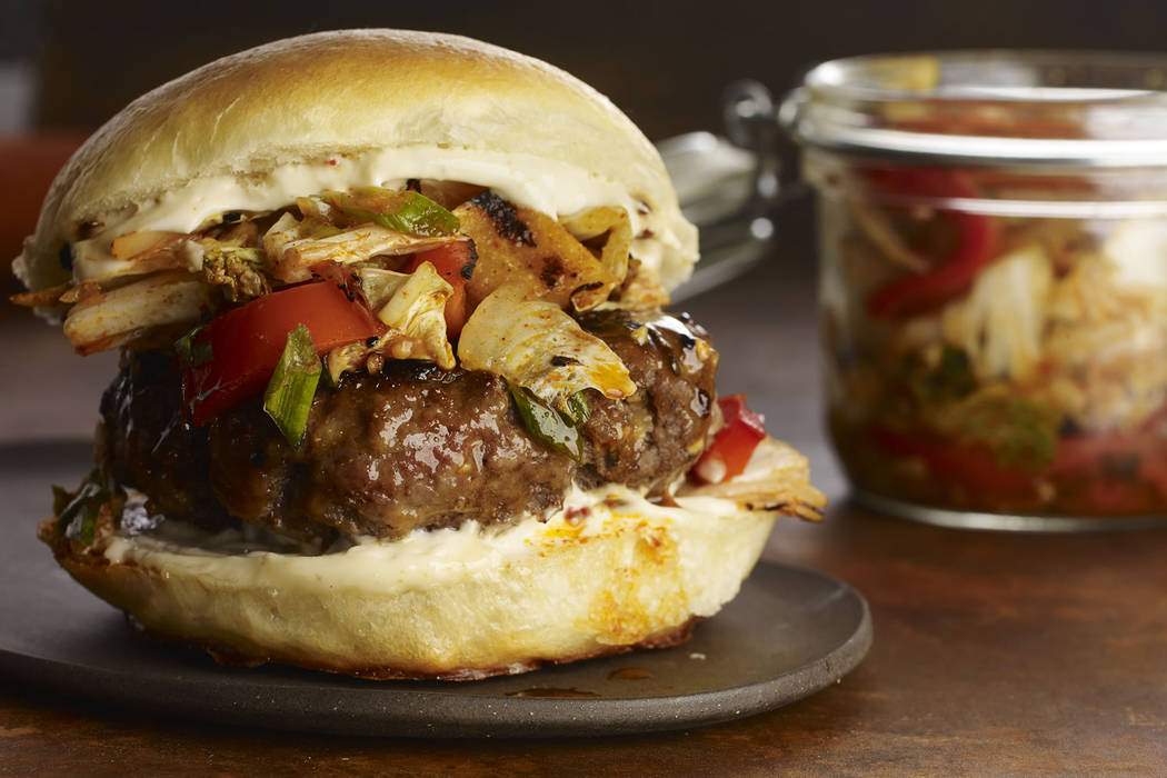 Korean bbq burger with grilled kimchi & ginger garlic mayo