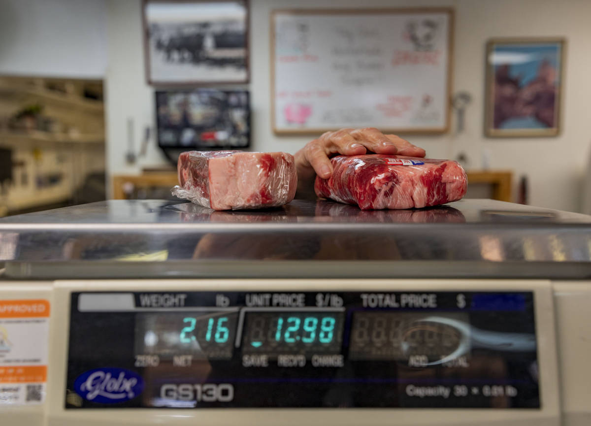 There were so many — some buying as much as 40 pounds of ground meat — that he and his wife, Chemaine, had to close from 11 a.m. to 2 p.m. just so Jensen could catch up cutting and grinding. They were there until after midnight preparing for the next day, and they recruited friends, family members and retired butchers to help.