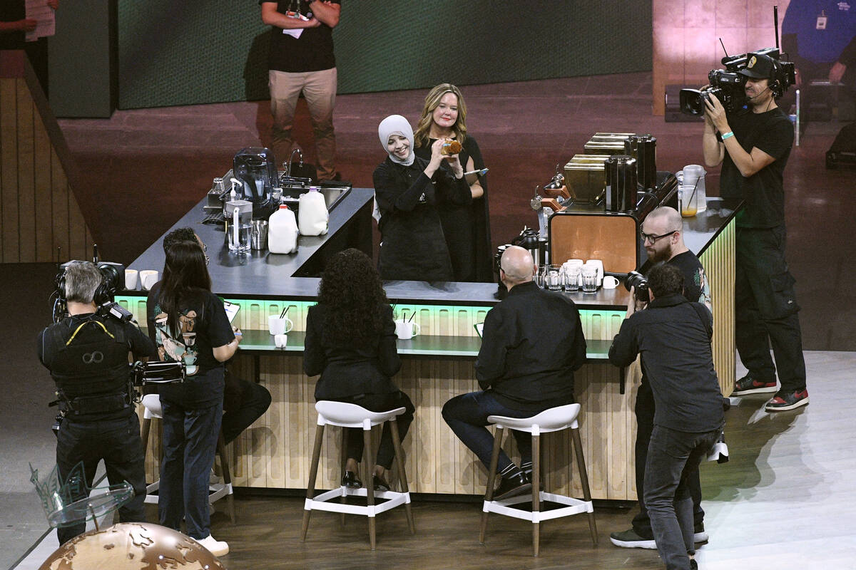 Sumayyah, representing Europe, Middle East and Africa, took the stage first; one of the big screens showed her mother. “You got this!” someone cried out in the crowd. For her signature drink, she prepared an iced cardamom honey shaken espresso, a mingling of citrus, spice and a sweet finish.