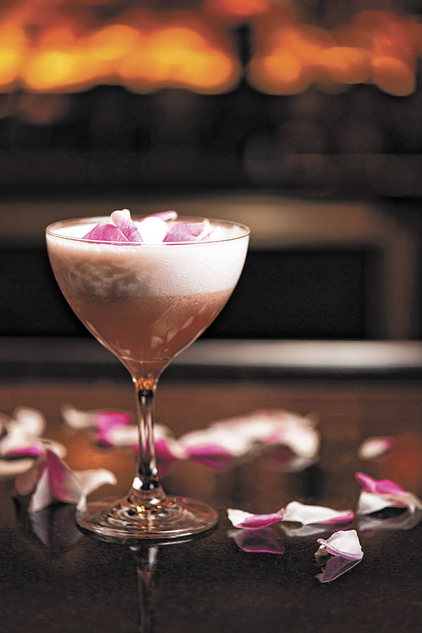 The Strawberry Blanc, $16, at Bardot Brasserie at Aria is garnished with edible rose petals. It’s made with yellow Chartreuse, strawberries and sparkling rosé.