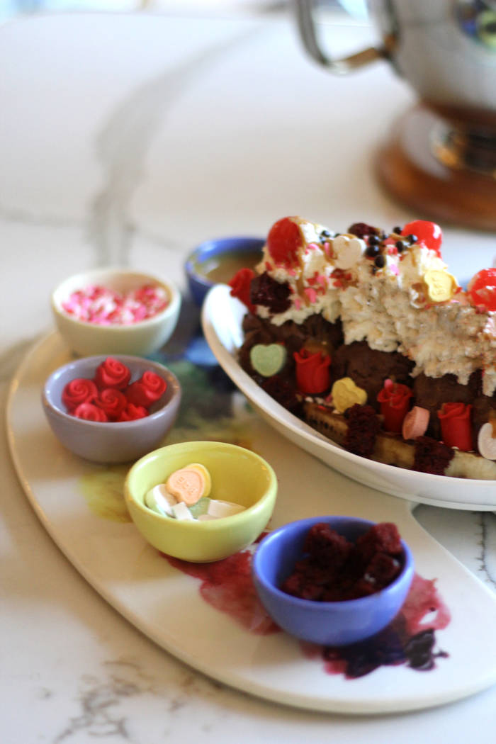 Scotch 80 Prime at the Palms will give its Fire & Ice Banana Split, $36, a Valentine’s twist with chocolate ice cream, red velvet cake, sprinkles, conversation hearts, candied roses and crispy chocolate pearls.