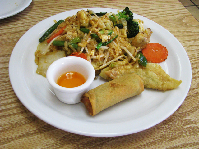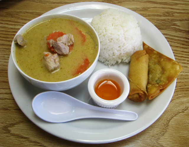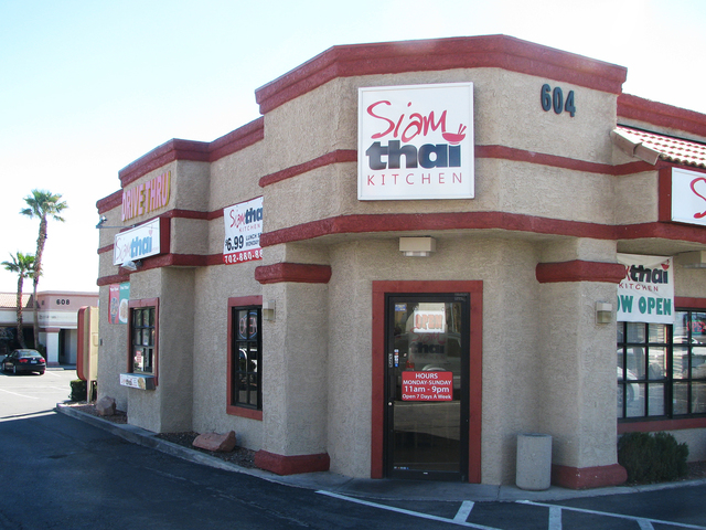 The Las Vegas Valley is full of places like Siam Thai Kitchen, but that’s a good thing: little, hole-in-the-wall-type joints that aren’t much to look at from the outside, but for those brave enough to venture within, a culinary find awaits. Located in an aging strip mall near Rainbow Boulevard and U.S. Highway 95, Siam has the somewhat unique distinction of being a Thai restaurant with a drive-thru. On the Friday afternoon my co-worker and I were there for lunch, we noted that the tiny dining room filled up quickly with what looked to be nearby office workers who obviously were not strangers to the place — always a good sign. We started with crab Rangoon ($6.95 for six pieces), which was tasty and among the best I’ve tried. Our entree choices were pad Thai with vegetables (it also comes with a choice of chicken, pork or tofu, or add beef for $1 or shrimp for $3 more) and yellow curry, both available on the lunch specials menu. The lunch specials are $6.99 and are served from 11 a.m. to 3 p.m. Monday through Friday. They include a small green salad, fried egg roll and fried won ton, and among the entree choices are Kung Pao chicken, cashew nut, pepper steak and pad pak, served with white rice (brown rice is $1 more). The regular menu also has salads (papaya, larb, yum seafood), noodle dishes (pad see ew, pad kee mao, lad nah), fried rice and entrees such as spicy catfish, spicy eggplant and pad phet. Curries (red, yellow, green, panang and pineapple) are $9.95 each. The dessert menu features traditional mochi ice cream ($3.95) along with specialty choices such as mango with sweet sticky rice ($5.95) and fried banana with or without ice cream ($3.50 to $4.50). The beverage menu includes Thai iced tea or coffee for $2.50 and fresh young coconut for $4. Carry out and delivery are available. Regular menu prices average $10 to $13. Siam Thai Kitchen is open from 11 a.m. to 9 p.m. daily.