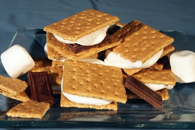 Yes, s’mores, that humble treat of childhood, made by toasting a marshmallow and squishing it between two graham crackers, one of them topped with part of a Hershey’s candy bar.