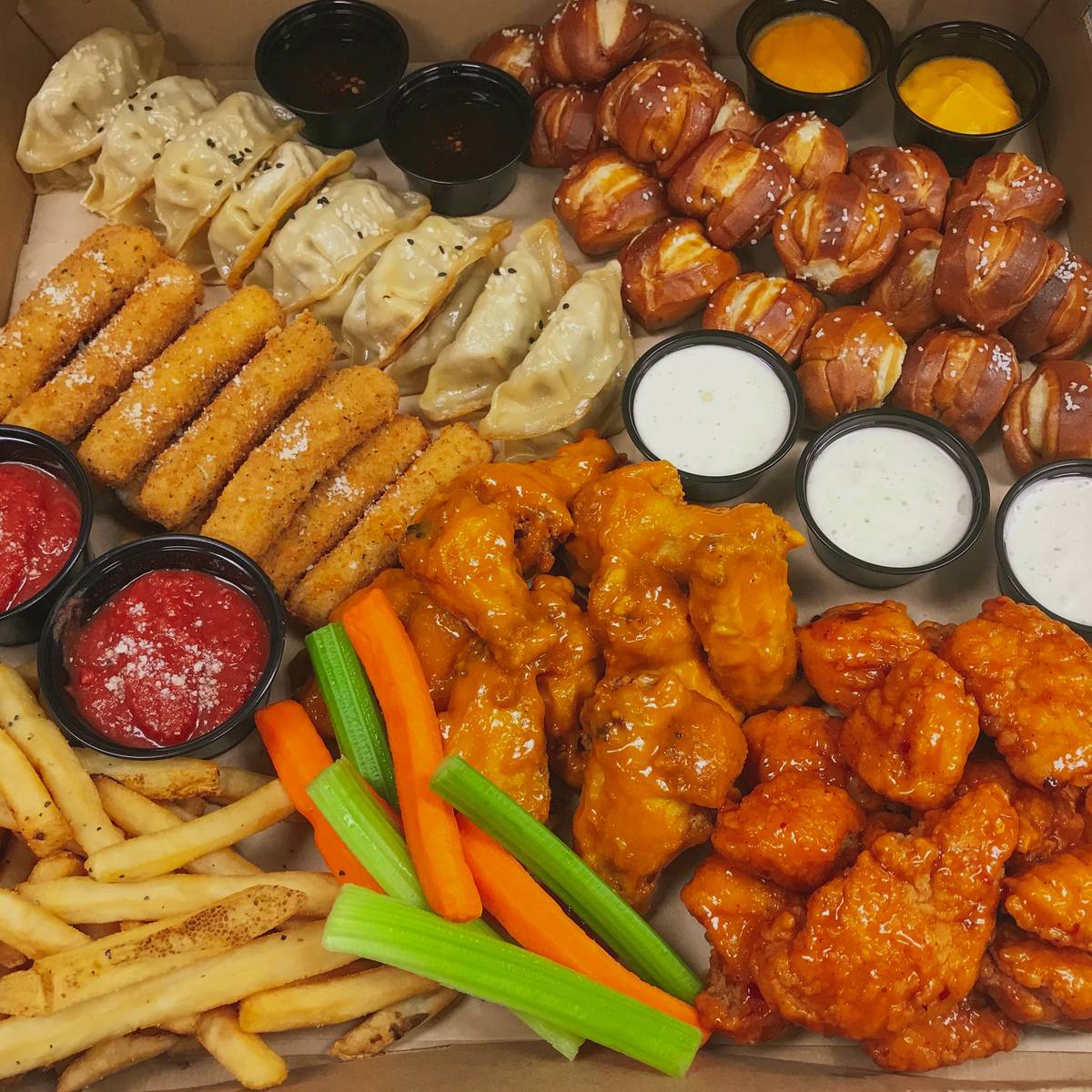 Just in time for the Vegas Golden Knights’ next game, at 7:30 p.m. Thursday at the San Jose Sharks, PT’s Taverns has announced that its Hat Trick Party Box will be offered during all Knights games this season. The box, which is available for dine-in and takeout, contains mozzarella sticks, boneless and classic chicken wings, pretzel bites, seared potstickers, french fries and dipping sauces for $55 (add a cheese or pepperoni pizza for $10 more). The company’s 64 outlets also are offering Nathan’s hot dogs for $3, chicken and waffle bites for $5, personal cheese and pepperoni pizzas for $6 and buckets of select beers and hard seltzers for $20. ptstaverns.com