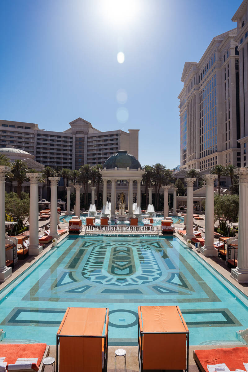 Garden of the Gods Pool Oasis, now open, encompasses seven pools, chairs, lounges, daybeds and cabanas. The Fortuna Pool features five swim-up blackjack tables. Statues inspired by classical antiquity ring Temple Pool. Venus Pool is 21 and older. Reservations can be made for poolside spa services from Qua Baths & Spa.