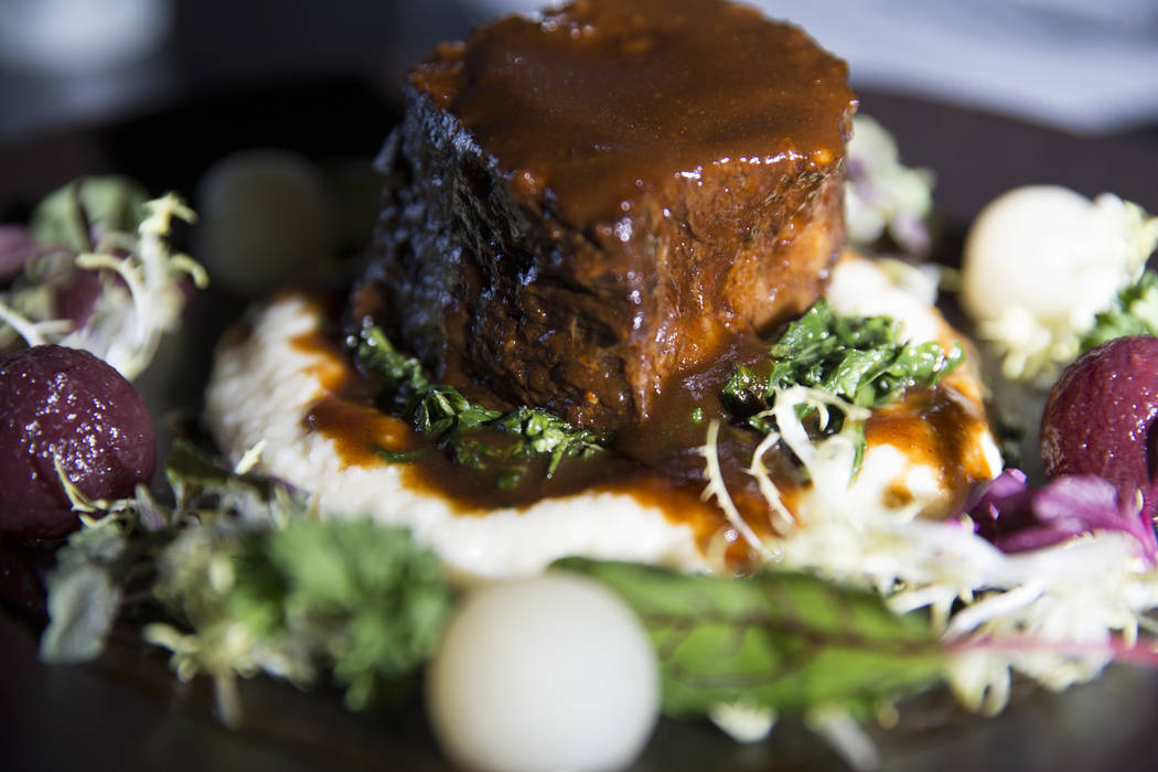 Tran’s food is based on offbeat combinations of complementary seasonal foods. An entree of slowly braised short ribs ($22) with lots of beefy flavor was so tender the meat fell apart at the touch of a fork. They were served on a bed of creamy polenta, accompanied by poached pears and earthy sauteed turnip greens.