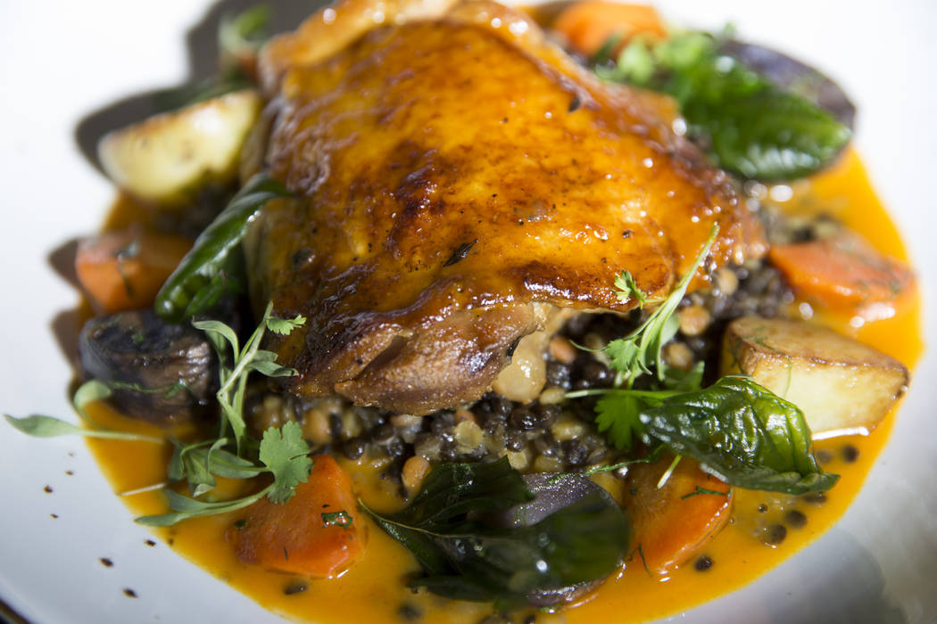 Tran employed an admirable degree of restraint in an entree of Spicy Vietnamese Curry Chicken ($18). “Spicy” generally translates to incendiary in these days of ghost-pepper and Carolina Reaper idolatry, but this curry just had a middling afterburn. It also had lots of flavor, beginning with the skin-on, bone-in chicken thigh and extending to the roasted heirloom carrots, marble potatoes and beluga lentils napped with curry sauce.