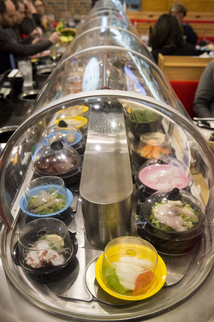 It is Southern Nevada’s first — and, apparently, only — conveyor-belt restaurant. Maybe you’ve heard of such spots, many of which are overseas. Generally they serve sushi, with customers snagging their choices from the belt.