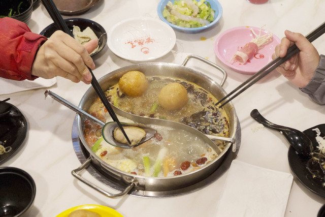 The assorted mushroom broth ($3.99) was nice and earthy and contained an assortment of mushrooms that included enoki, shiitake and several that were less familiar. Even better, though, was The Beautiful Tomato broth ($4.99), which had multiple levels of sweet-and-sour flavor and just a little spice along with the heat. Into them we dipped lobster balls, surimi, shrimp and Chinese yam, priced at 99 cents to $3.50 per plate, and both became fine soups as we finished.