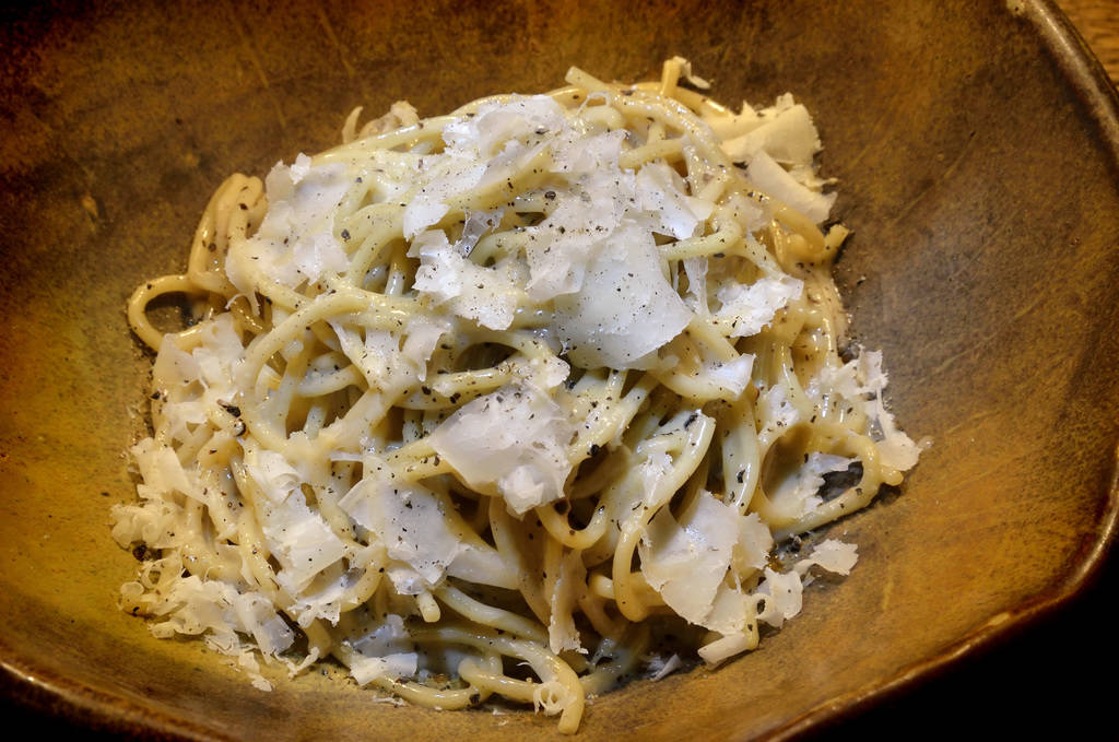 Knowing the pasta is made in-house, it was a little surprising to see the Abruzzo-region specialty chitarra on the menu. The labor-intensive chitarra isn’t rolled or extruded but pressed onto a multi-stringed device (the origin of the name, which means “guitar”), the freshly cut, squarish strands dropping to a platform below. It’s a particularly chewy cut that deserves a starring role, which made it perfect for Roman-style cacio e pepe ($16), in which the pasta is simply tossed with pecorino Romano cheese and ground black pepper (in this case tellicherry, which has larger grains that pack extra punch) with just some pasta water and a little olive oil. It’s the essence of Italian food, simple but high-quality elements that add up to a feast.