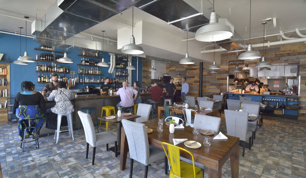 Service was pleasant and efficient. Esther’s Kitchen, which opened in early January, has a funky vibe that’s appropriate for its location on the edge of the Arts District. An oversized photo mural of a pier dominates the dining room, and there are wooden tables, a mix of upholstered and metal chairs, artfully glazed floor pavers and al fresco seating overlooking either street or alley. Trees’ pride in his hometown and the artists around him shows in the use of pottery dishes by Clay Arts Las Vegas and retro silverware embossed with “Dunes Hotel.”