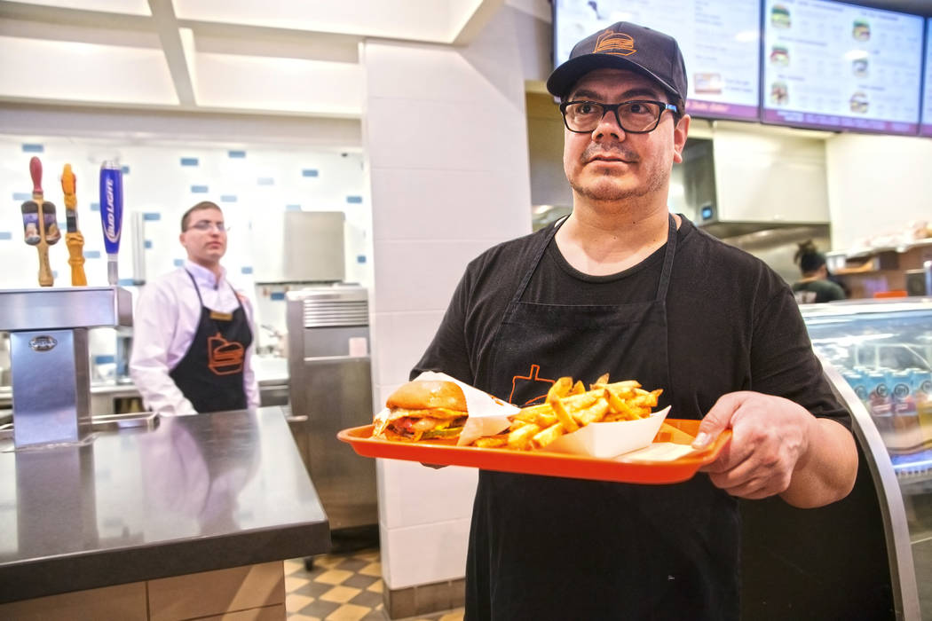 Flippin’ Fries ($4.45) weren’t as juicy but no less messy, which in this context is always a good thing. Hand-cut for a certain lack of robotic perfection, they’d been fried long enough that the sugars started to caramelize and brown for added flavor and texture, which means they were fine all by themselves. But they were even better with the bits of grilled onion, melted cheeses — American for smoothness and cheddar for zip — and Flippin’ Sauce, sort of a cross between fry sauce and Thousand Island, to seal the deal.