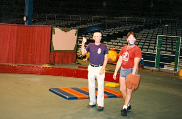 And no man is an island. Michael Goudeau also is a Clown School grad. You may know him from years of juggling and chomping apples in Lance Burton’s show, or from Penn Jillette’s podcast, “Penn’s Sunday School.” But he, too, rode the circus train for two years after clown training in 1979.
