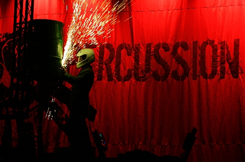At one point, Justin Spencer (the group's founder) and Ryan Vezina drum all the way up the steps of tall folding ladders, then simultaneously leap down, giving the steps a good rake on the way to the floor.