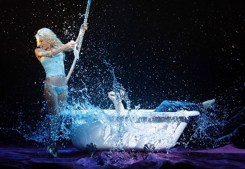 At least they’re brought to life here with a purpose, sung live by the leads (and sometimes with singers Janien Valentine and Charlene Tappeiner) as the striking dancers step up for burlesque numbers: Michelle Diterlizzi’s dazzling pole acrobatics or Quinn Kingston’s cowgirl swing over the audience.