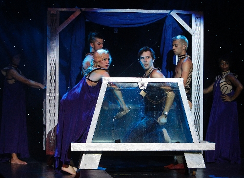 The Clarion show only stumbles in the many stretches when he’s not onstage. Four young dancers work their tails off to kill time for the contraptions to be set up. But no one really comes to a magic show to see some dude go Zoolander. Late in an 80-minute show that seems much longer, the troupe arrives at a novel solution: doing one of the illusions — the ol’ pass-through-the-fan blade — on their own without Rouven.