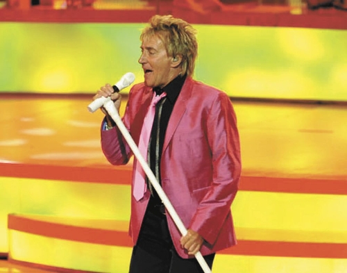 Nothing really wrong with that, beyond the sound mix occasionally drowning the star’s vocals. Stewart arfed like a dog on "Infatuation," and eased his way through "Tonight’s the Night," pulling on his pink tie and doing a cheeky, self-aware soft shoe.