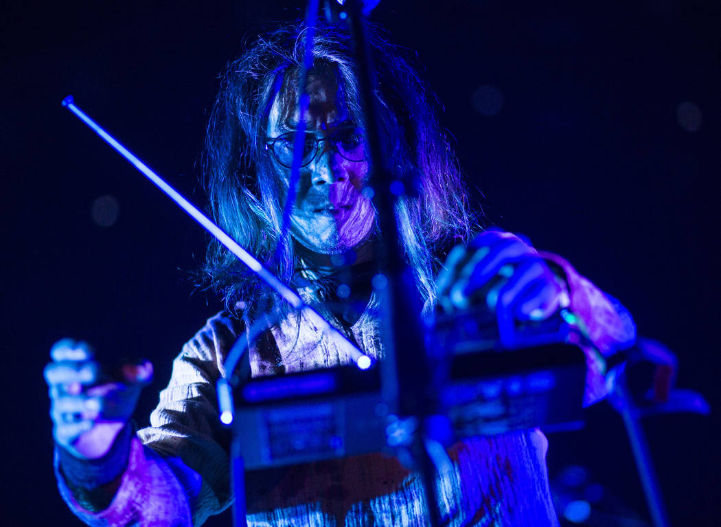 On screen, the walls are getting painted with blood. On stage, the synth is doing all the screaming, as if it’s the thing fighting for its life.