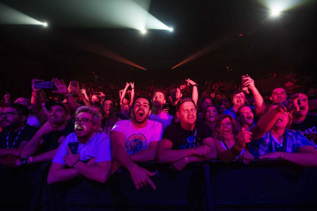 Yeah, the light-heartedness is still there at times, as when Hoppus joked of making a guest appearance during a performance of “Magic Mike” later that evening — “It’s dad bod night,” he explained. But for the most part, the band has recalibrated itself into a poised, polished arena rock act, their show complete with pyro bursts, showers of sparks raining down from the rafters and the aforementioned inflatables, which were tossed into the crowd during a surging “Dumpweed.”