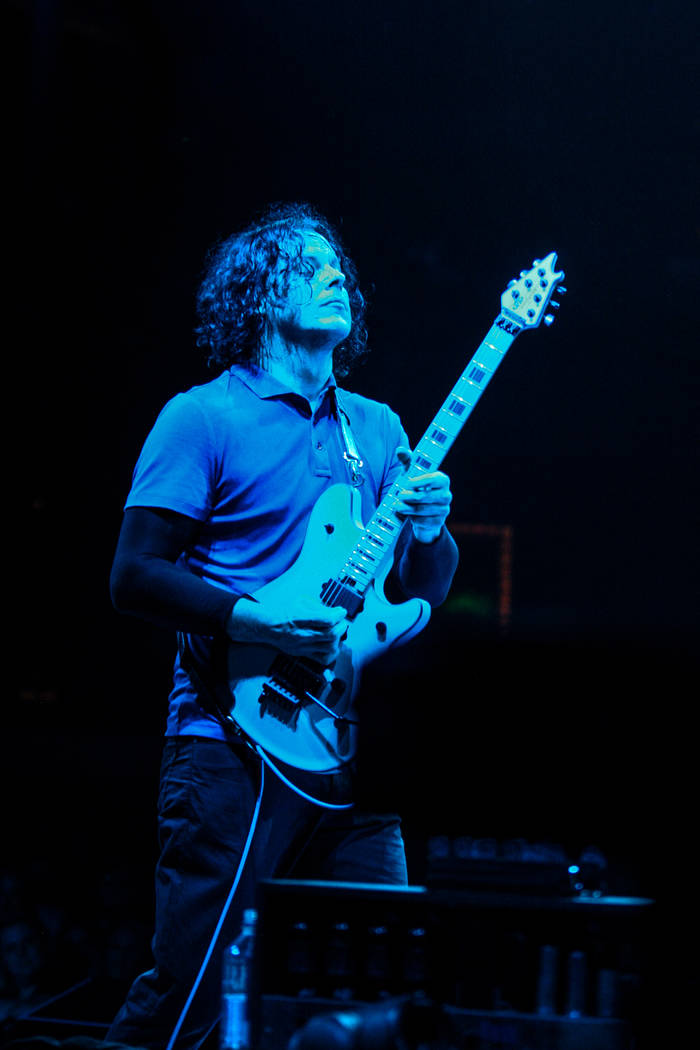 Elsewhere, the band expanded upon the concussive core of songs such as “Corporation” and “Why Walk a Dog?” both off White’s latest record, “Boarding House Reach.” The former mushroomed into one of the densest jams of the evening, with White howling about the Illuminati, Donald Trump and the Kardashians while clawing at this guitar as if trying to excavate hidden truths from its strings. The latter got irradiated by a nuclear lead from White that blanketed the room in a fallout of distortion.