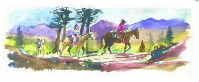 For a comfortable adventure, layer your clothing. Wear long pants to minimize chafing by the saddle and scratches from the brush. If you have boots, wear them, but sturdy shoes will suffice. Wear a snug-fitting hat or one with a tie-down under your chin. Slather on the sun block. Stow loose items in a pack you can wear or tie to the saddle. Then sit back and view the scenery the way the old-time cowboys did, from between the ears of your horse.