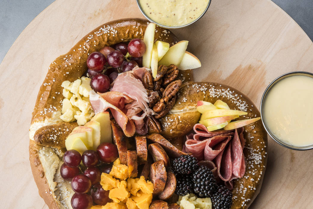 At Topgolf at MGM Grand, the Jumbo Pretzel Board is adorned with Genoa salami, jalapeno sausage, prosciutto, pepper jack and cheddar cheeses, apples, grapes, blackberries and candied pecans. It’s served with Pabst Blue Ribbon cheese sauce and, just for old times’ sake, mustard sauce, and it’s $25.
