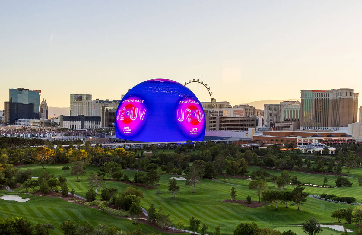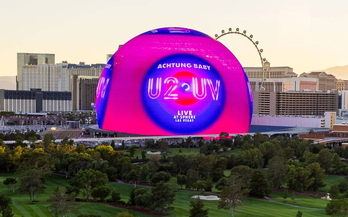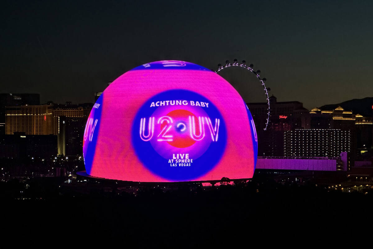 A graphic for the U2 UV Achtung Baby is displayed during the opening night of the Sphere with a U2 concert on Friday, Sept. 29, 2023, in Las Vegas. (L.E. Baskow/Las Vegas Review-Journal) @Left_Eye_Images