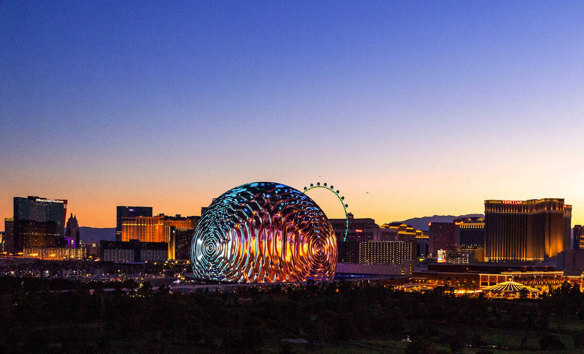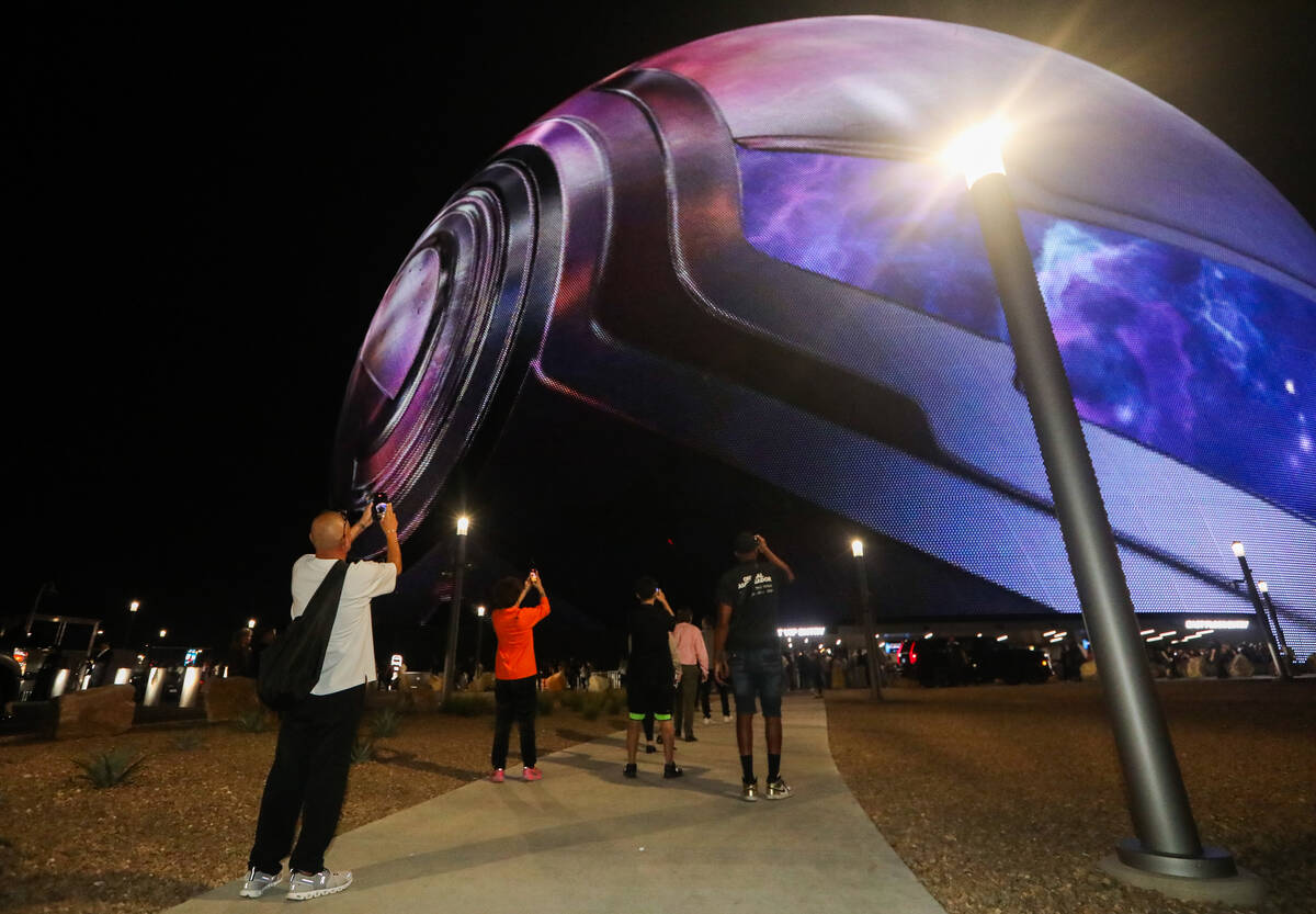 Cheryl and Jeff Labounty admire the outside of the Sphere on the night of its inaugural performance featuring U2 on Friday, Sept. 29, 2023 in Las Vegas. (Daniel Pearson/Las Vegas Review-Journal)