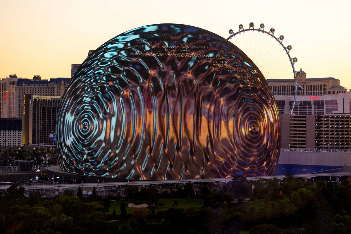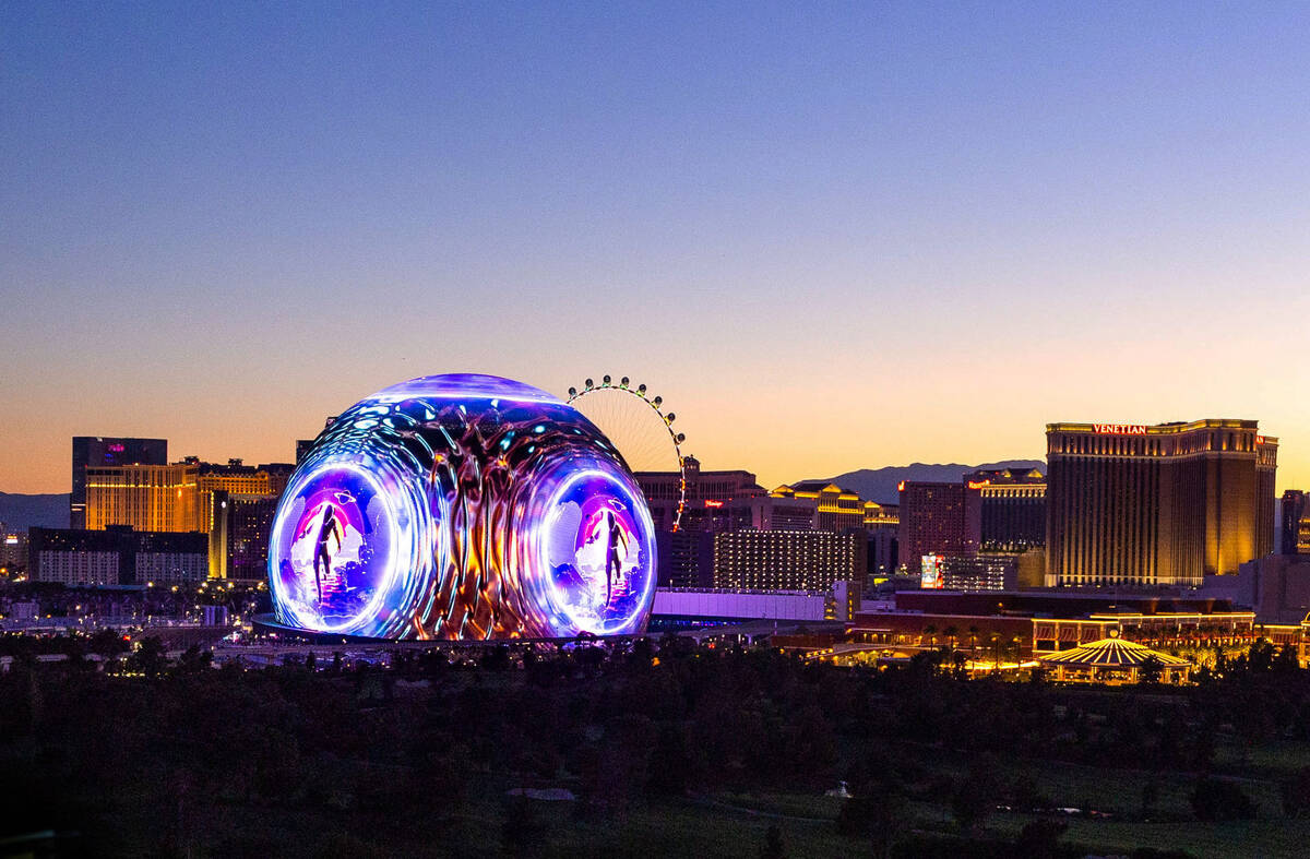 A whale floats across the screen during the opening night of the Sphere on Friday, Sept. 29, 2023, in Las Vegas. (L.E. Baskow/Las Vegas Review-Journal) @Left_Eye_Images