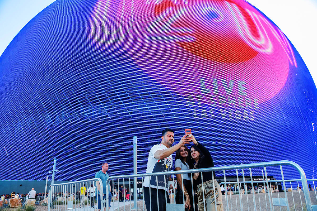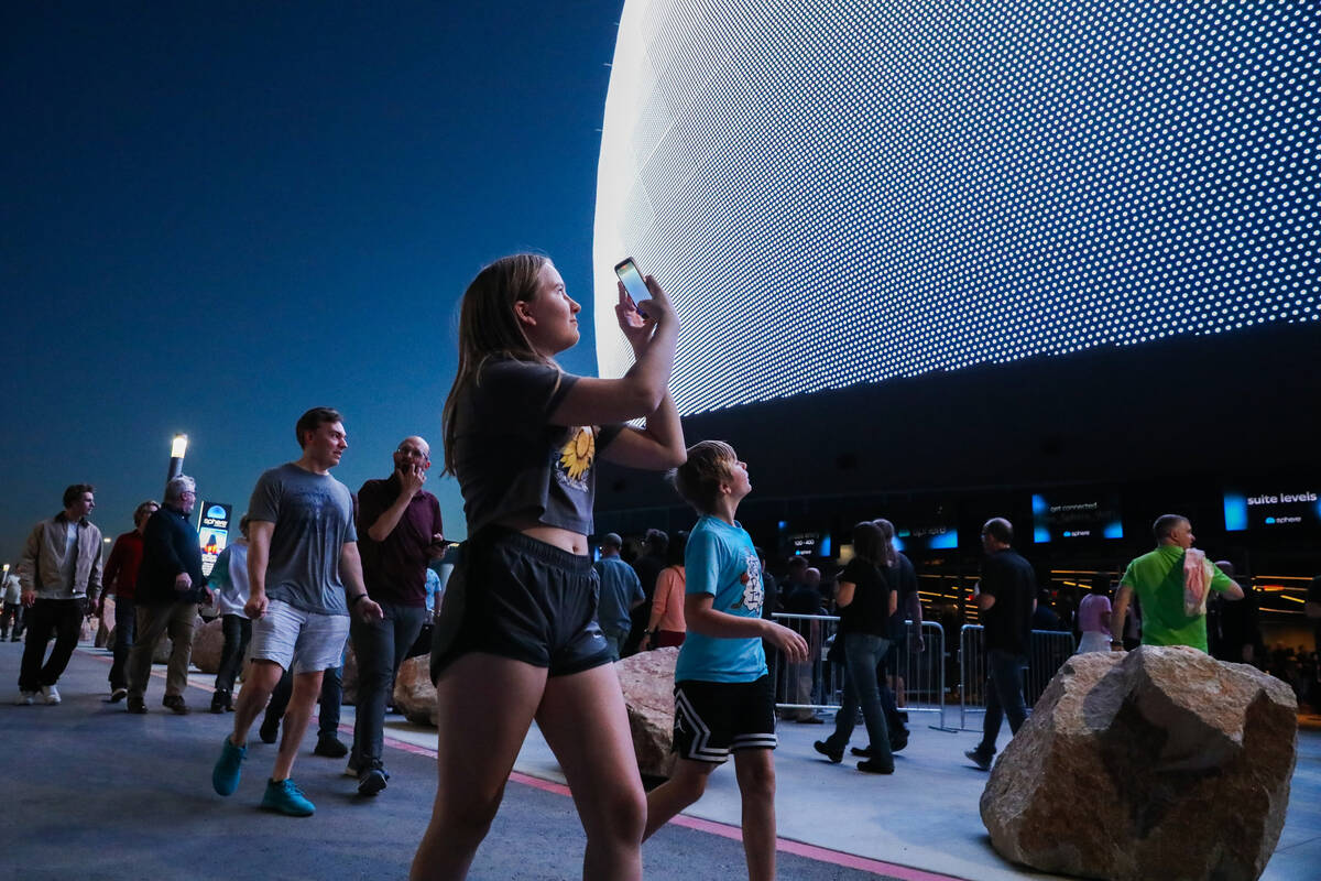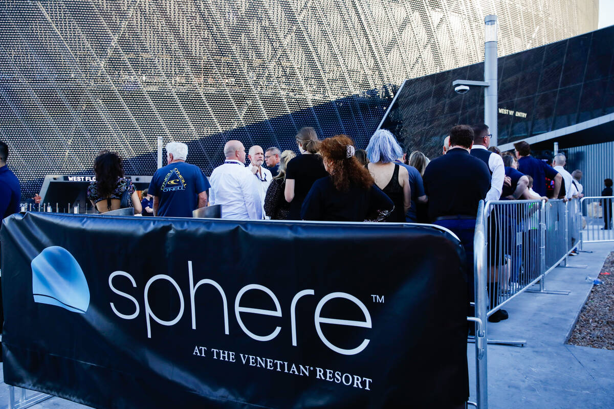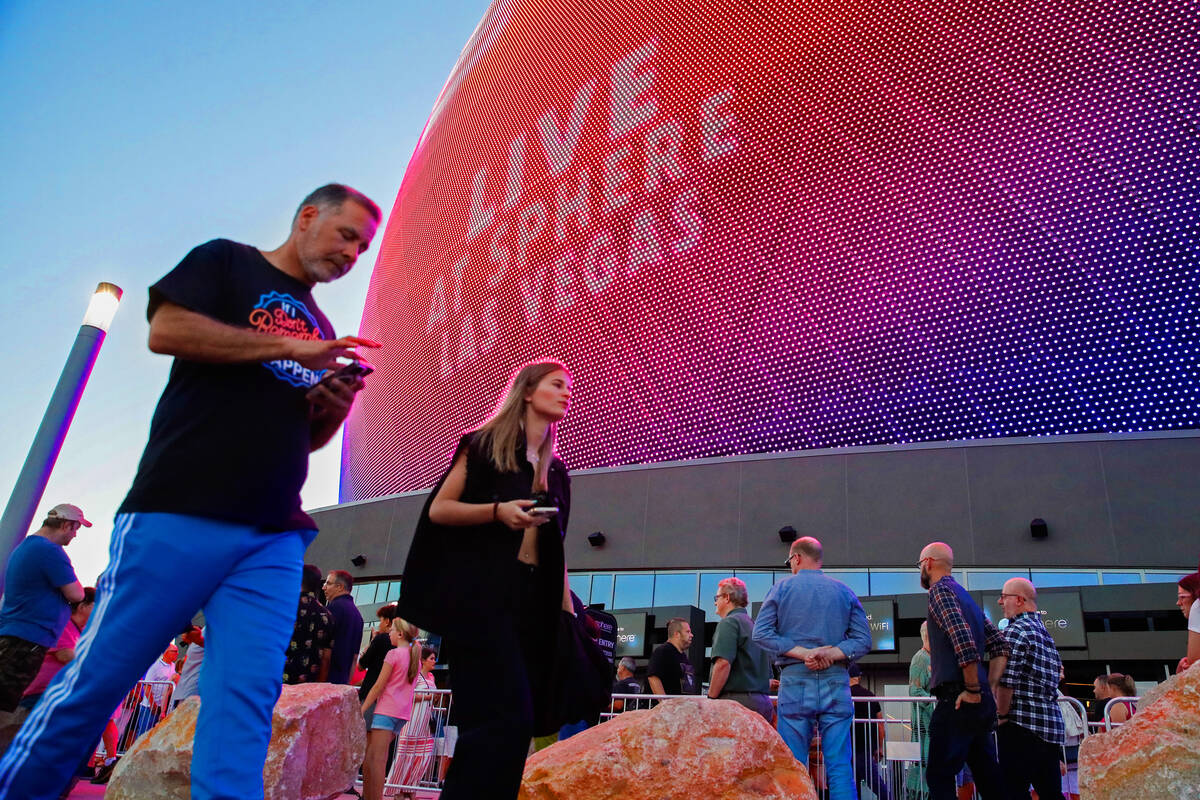 Excited fans wait outside of the Sphere on the night of its inaugural performance featuring U2 on Friday, Sept. 29, 2023 in Las Vegas. (Daniel Pearson/Las Vegas Review-Journal)