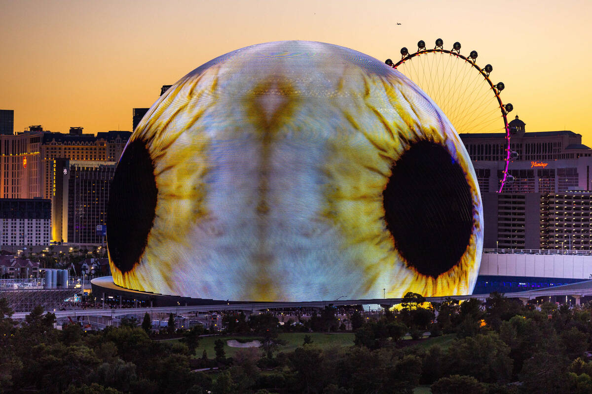 An eyeball graphic during the opening night of the Sphere with U2 concert on stage Friday, Sept. 29, 2023, in Las Vegas. (L.E. Baskow/Las Vegas Review-Journal) @Left_Eye_Images