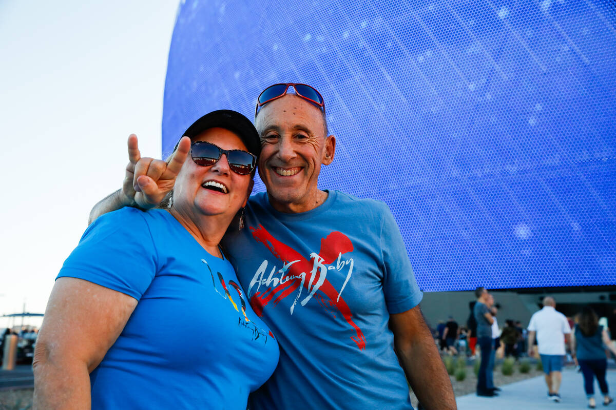 Joe and Maria Monek traveled from Vancouver, Washington to watch the inaugural performance at the Sphere featuring U2 on Friday, Sept. 29, 2023 in Las Vegas. (Daniel Pearson/Las Vegas Review-Journal)